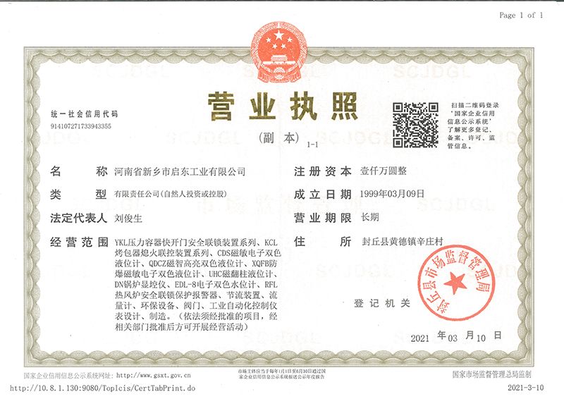 河南省新鄉市啟東工業有限公司始建于1987年,是專注研發、生產自動化儀器儀表(主要與壓力容器、鍋爐等容器配套使用)的廠家。主要產品有液位計(磁敏雙色型、磁翻柱型等)系列、烤包器熄火聯控裝置系列、壓力容器快開門安全聯鎖保護裝置系列、鍋爐報警器系列。二十多年來,公司產品暢銷國內并遠銷俄羅斯、蒙古與東南亞,深得廣大用戶的信賴和好評。我們多年來致力于自動化儀器儀表的研制生產,公司現具有完善的生產、試驗、檢測手段和設備??萍紕撔隆⒄\信服務,是我們不變的經營理念,我們將以強有力的技術支持及售后竭誠為客戶提供良好的服務。  2012年我公司成功研發了KCL系列烤包器熄火聯控裝置,并于2013年2月2日榮獲中華人民共和國國家知識產權局辦法的《實用新型**證書》<**號:2021202257735>該產品廣泛應用于唐鋼等大型鋼鐵企業,為烤包器安全作業提供了有力的保障?! ?002年我公司成功研發磁敏電子雙色液位計獨特的高亮度LED紅綠雙色顯示,獲得了專家的首肯和用戶的一致好評。在此基礎上我公司研發人員十年磨一劍,致力于XQFB-1防爆型磁敏雙色液位計的研發,于2013年12月27日由國家防爆電器產品質量監督檢驗中心檢驗合格并頒發防爆合格證書<編號:cnex19.0883>。該產品性能得到了充分的發揮,廣泛應用于含有Ⅱ類A·B級T1-T4組可燃氣體或蒸汽與空氣混合形成的爆炸性混合物的0區、1區危險場所。連接用戶DCS或PLC系統實現遠距離集中顯示和控制,從而實現節能、數字化管理。為用戶增加了一定的經濟效益和社會效益,。2014年公司成功申請了夢潤儀表的logo,新的品牌新的形象,夢潤儀表是啟東的LOGO, 歡迎新老用戶前來洽談合作。  我們一如既往地注重科研的投入,憑借產品的不斷更新、加大科技含量,進一步拓展市場。我們相信品質成就未來,以過硬質量、優惠價格、完善的售后服務熱忱歡迎廣大客戶來我司視察指導、洽談業務;精誠合作,共創輝煌!